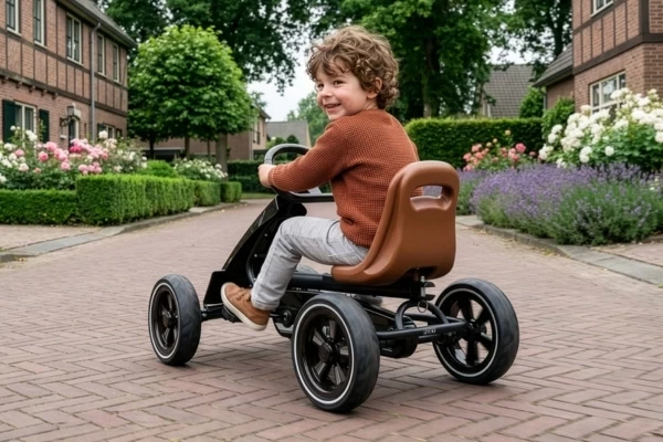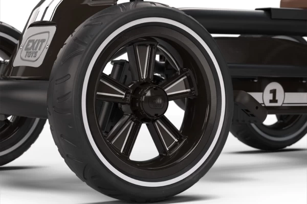 Laat je kind de buurt verkennen en racen met de EXIT Foxy go-cart in de uitvoering Espresso Black! De verstelbare zitting groeit in drie standen mee met kinderen van 2 tot 5 jaar. De vier anti-lek EVA-banden met sportieve velgen zorgen voor een soepele, stabiele rit. Dankzij de wendbare schommelas en kleine draaicirkel zijn scherpe bochten geen probleem. Met de meegeleverde stickers krijgt elke Foxy een persoonlijke look. Spelenderwijs ontdekken kinderen hun motoriek en zelfvertrouwen terwijl ze eindeloos rondjes rijden. Optioneel: voor extra plezier kan de bijpassende aanhanger mee worden besteld.